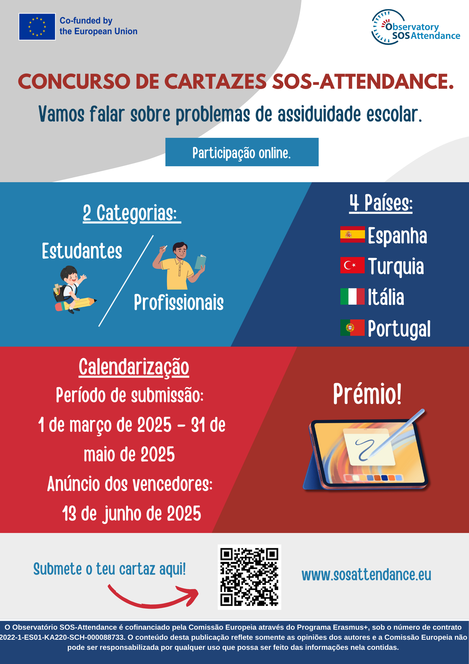 Esta campanha foca em um concurso de cartazes criado para abordar questões de frequência escolar e abandono precoce dos estudos, com uma mensagem que promove conscientização e soluções.